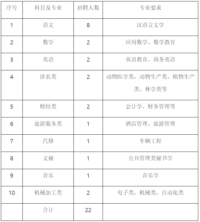本科及以上师范毕业生或非师范类的相近专业毕业生,热爱教育事业,身心健康,富有强烈的责任心和团队协作精神,善于表达沟通,能够胜任所带学科。