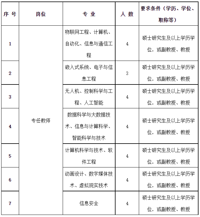 因教学工作需要,现招聘计算机类专业教师27名。招聘相关事宜如下:
