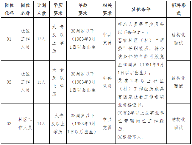 因工作需要,面向社会公开招聘社区工作人员40名,现将相关事项公告如下: