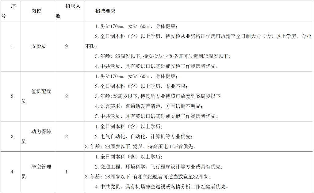 原标题:安庆机场招聘简章